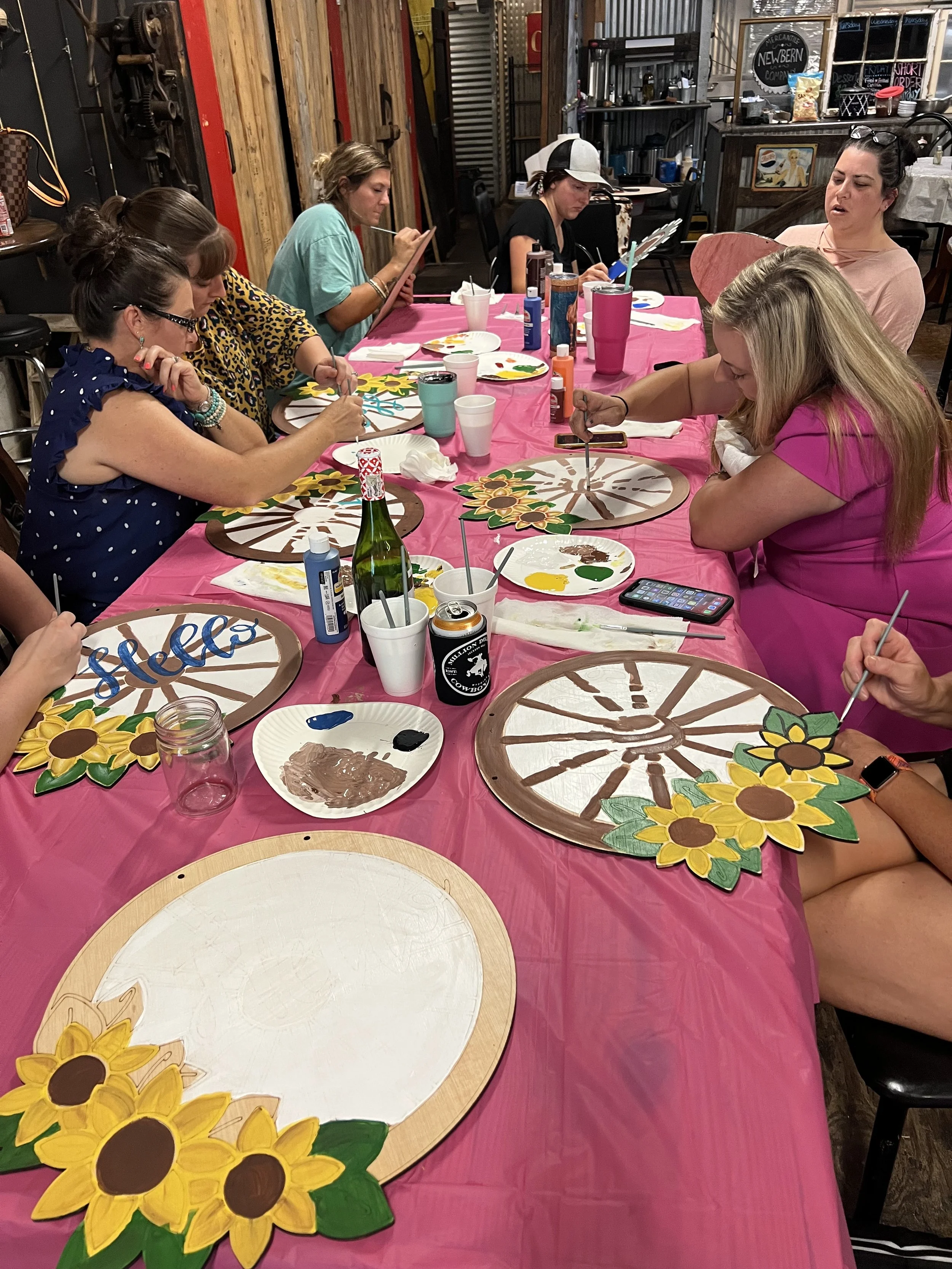Bring the creativity to your doorstep! I offer fully mobile paint parties where I come to you and guide your group through creating a beautiful, hand-painted wooden piece.