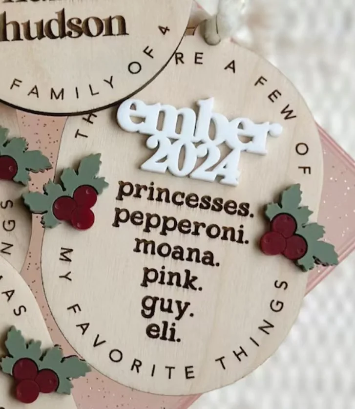 Celebrate what makes your little one unique with this personalized “Favorite Things” ornament! Made from 1/8” Baltic birch wood, it’s the perfect keepsake for holiday gifting or yearly traditions.